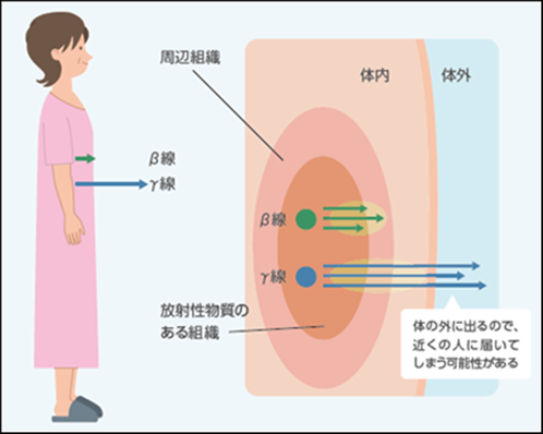 γ(ガンマ)線:飛ぶ距離が長く、対外に飛び出してしまいます。このため、周りの人に対する注意が必要です。