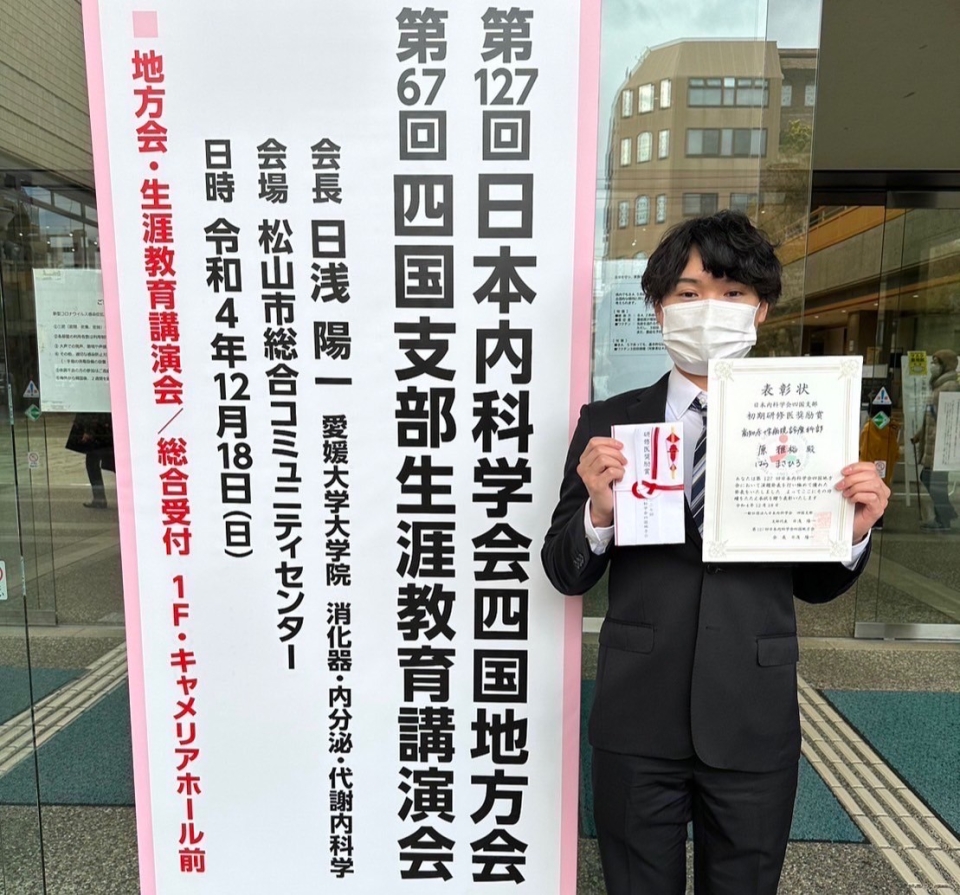 研修ブログ ホーム - 研修ブログ 学会発表 日本内科学会四国地方会に参加しました。2名の研修医が発表し、1名が初期研修医奨励賞を受賞しました!最近は学会が現地で開催されることも多くなり、緊張感を味わいながらも意欲的に学会発表に取り組んでいます。 研修ブログ 一覧に戻る
